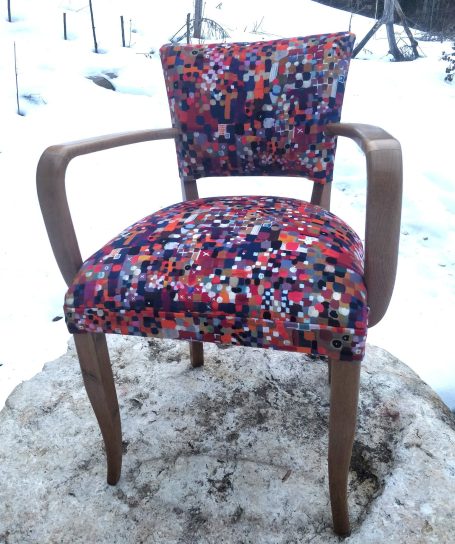 J’ai effectué un stage de deux jours avec Stephanie : une expérience inoubliable, elle m’a donné envie de continuer ! Je suis repartie avec une chaise joliment tapissée et qui m’a permis d‘expérimenter différentes facettes du métier de tapissière qu’elle partage avec générosité et enthousiasme.
